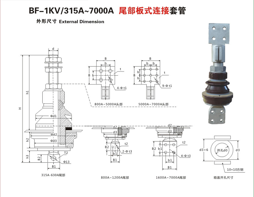 BF-1KV/315A~7000A尾部板式连接变压器套管