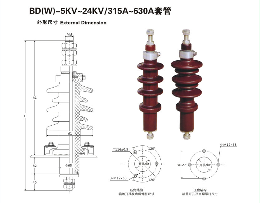 BD(W)-5KV~24KV/315A~630A变压器套管