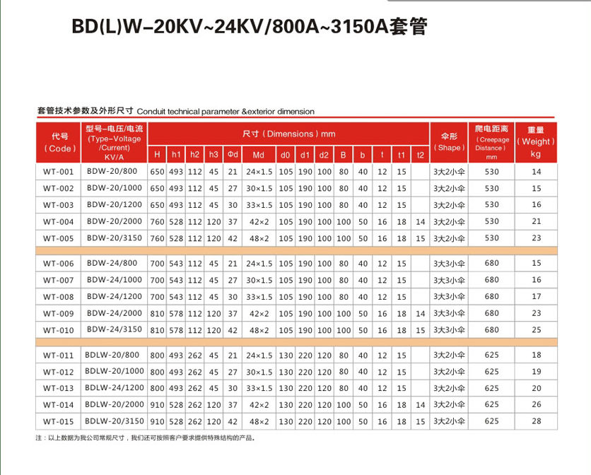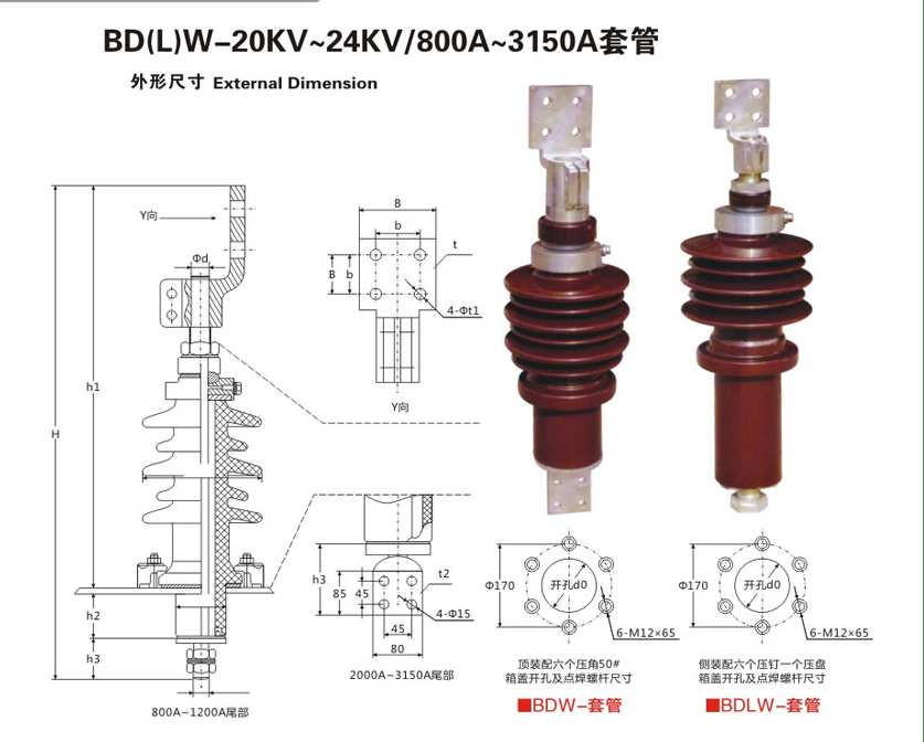 BD(L)W-20KV~24KV/800A~3150A变压器套管