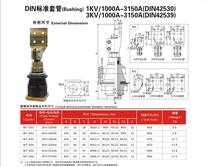 1KV/1000A-3150A(DIN42530) 3KV/1000A-3150A(DIN42539)变压器套管