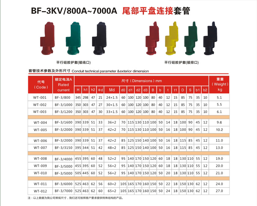 BF-3KV/800A~7000A尾部平盘连接变压器套管