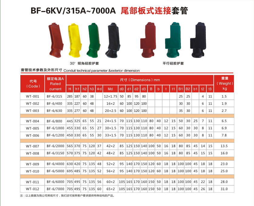 BF-6KV/315A~7000A尾部板式连接变压器套管
