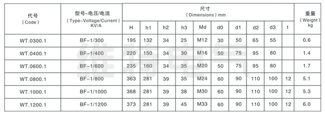BF-1 KV/300A-1200A变压器套管(尾部螺杆连接)