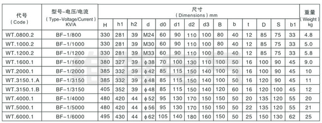 BF-1 KV/800A-6000A 变压器套管(尾部 T 型连接)