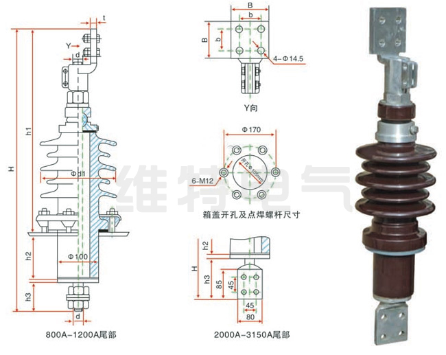 1.3普通型套管适用于轻污秽地区,防污型套管适用于重污秽地区c 1.4安装角度:垂直或倾斜角度不超过30°。