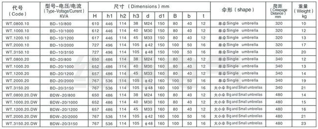 BD-10/20KV/800A-3150A BDW-20KV/800A-3150A变压器套管
