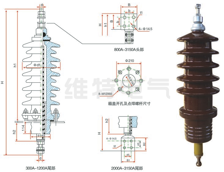 1.3普通型套管适用于轻污秽地区,防污型套管适用于重污秽地区c 1.4安装角度:垂直或倾斜角度不超过30°。