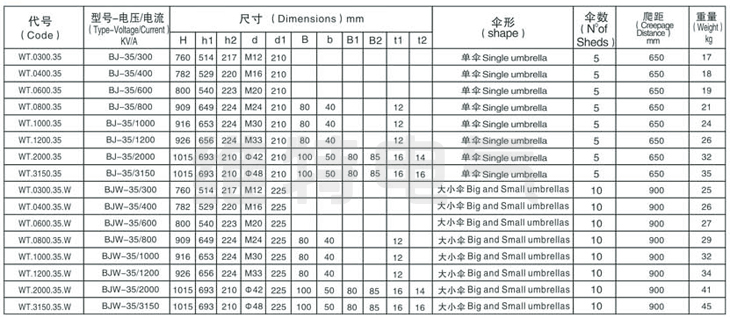 BJ-35KV/300A-3150A BJW-35KV/300A-3150A变压器套管