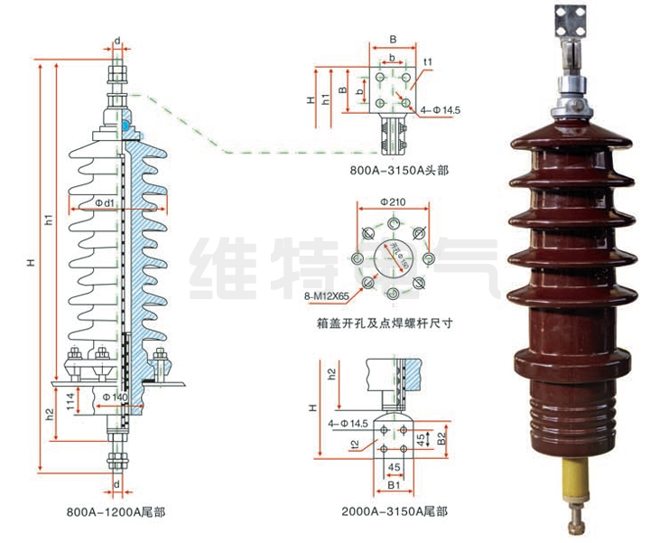 1.3普通型套管适用于轻污秽地区,防污型套管适用于重污秽地区c 1.4安装角度:垂直或倾斜角度不超过30°。