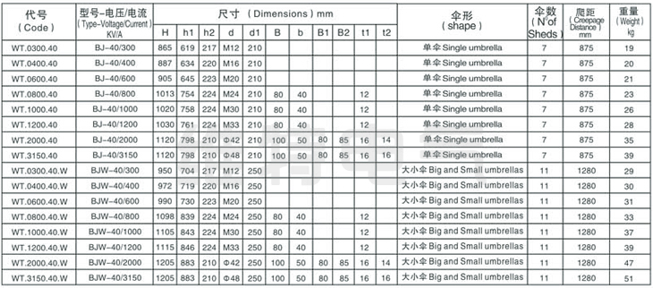 BJ-40KV/300A-3150A BJW-40KV/300A-3150A变压器套管