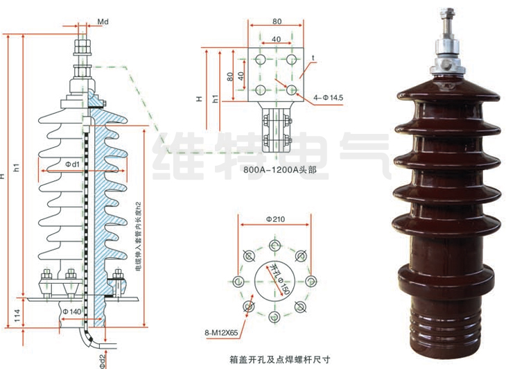 1.3普通型套管适用于轻污秽地区,防污型套管适用于重污秽地区c 1.4安装角度:垂直或倾斜角度不超过30°。