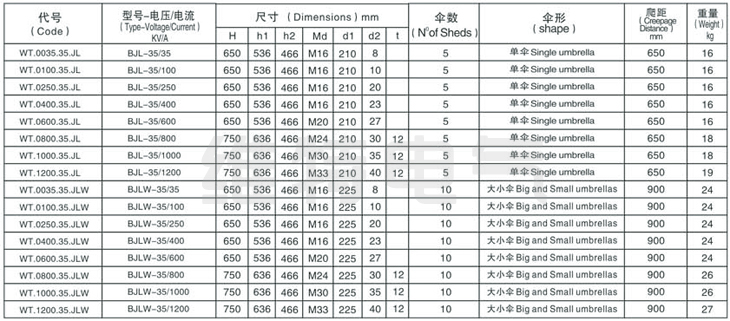 BJL-35KV/35A-1200A BJLW-35KV/35A-1200A变压器套管