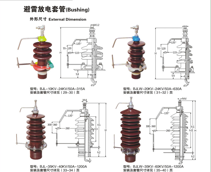 避雷放电变压器套管BJL-10KV~24KV/50A-315A