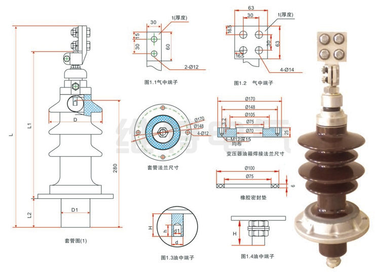 2.具有离抗震和耐破性、机械强度好,套管铝合金法兰采用航空技术生产,瓷套与法兰采用特殊工艺经卡装后粘接在一起,机械 强度高、耐腐蚀、外型美观,适合特殊环境。