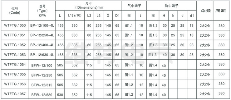B-变压器用;D-单体瓷绝缘;F-复合瓷绝缘;J-有附加绝缘:W-防污;L-穿缆(或可装电流互感器),套管型号中“广前 的数字表示额定电压(KV ) 后的数字表示额定电流(A)。