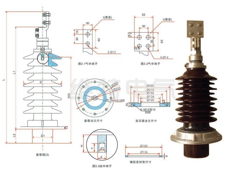 4.结构合理、安全性能好。产品设计载流裕度大,采用自体敗热和油循环敗热设计,减少和避免了导电杆在长时间或超负荷运行 时过热和烧蚀现象的发生。