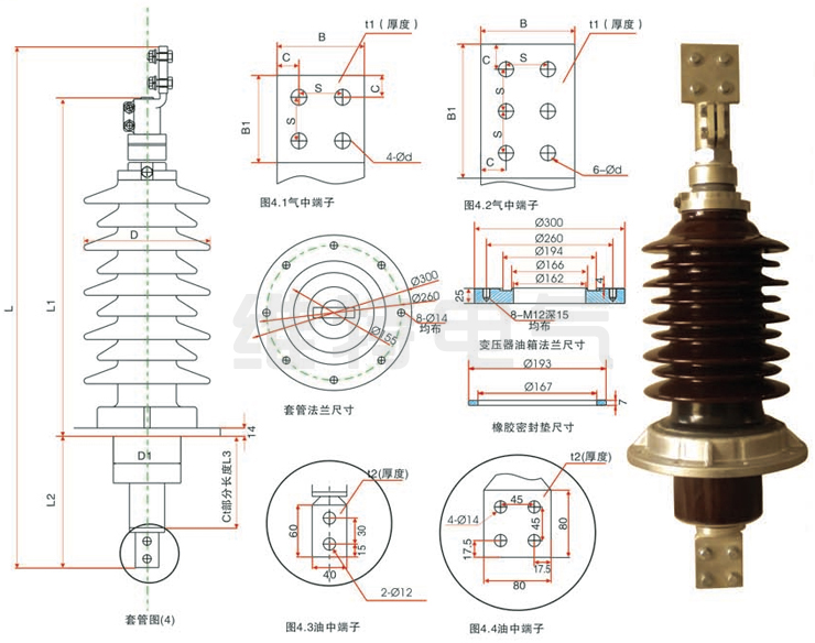 4.结构合理、安全性能好。产品设计载流裕度大,采用自体敗热和油循环敗热设计,减少和避免了导电杆在长时间或超负荷运行 时过热和烧蚀现象的发生。
