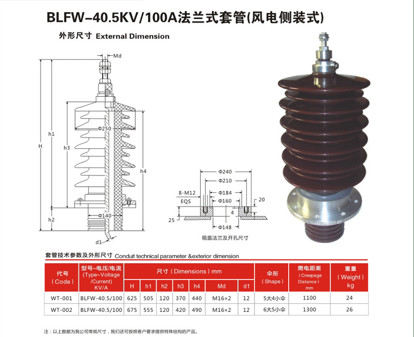BLFW-40.5KV/100A法兰式变压器套管(风电侧装式)
