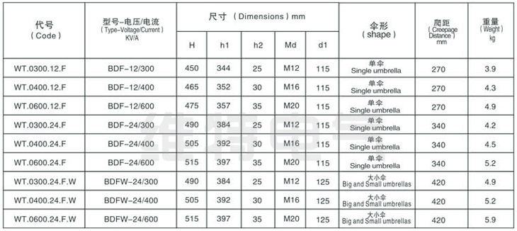 BDF-12(24)KV/300A-600A BDFW-24KV/300A-600A变压器套管