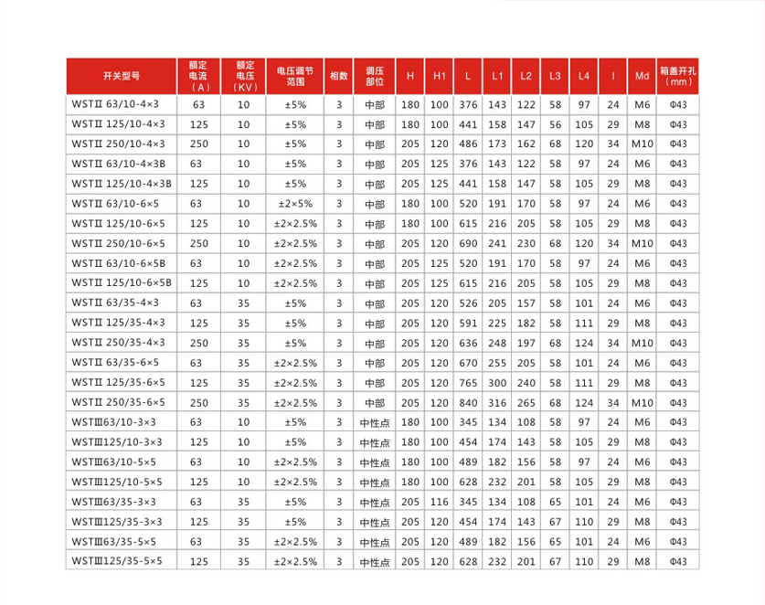 无励磁条形分接开关(WST II III 系列条形分接开关)